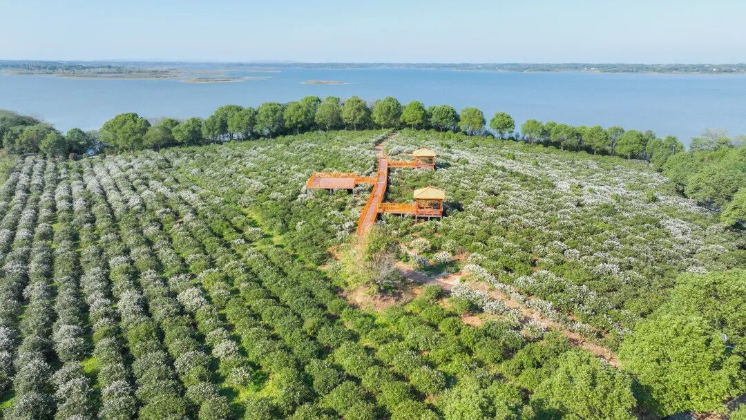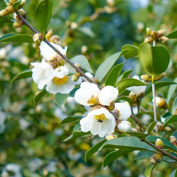 在灵犀茶油庄园一望无际的油茶林里,既有几米高的油茶古树,也有自主培育的油茶新苗,它们错落有致地散布在缓坡上,枝头点点纯白竞相开放,清香四溢。