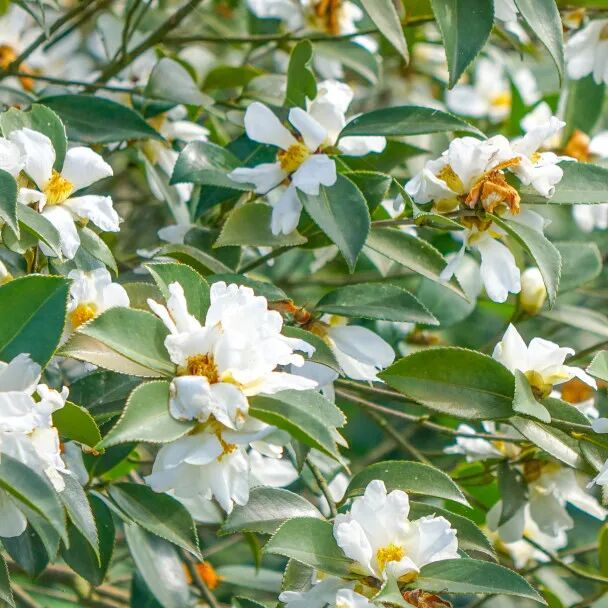 晶莹洁白、花型不一的油茶花,层层叠叠,如雪如玉,流动的素白,犹如铺上了一层厚厚的雪花,把连绵的油茶林装扮成一道独特的风景线。